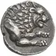 | Reversbeschreibung | Forepart of lion right, with open jaws and tongue protruding; between jaw and paws, zo ti mo in Cypriote characters. |