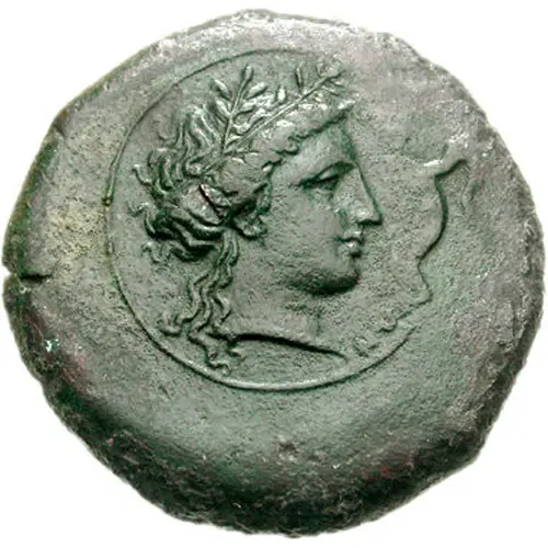 | Descrição do anverso | [HEPBEΣΣIN]ΩN, head of Kore right, wearing laurel wreath |