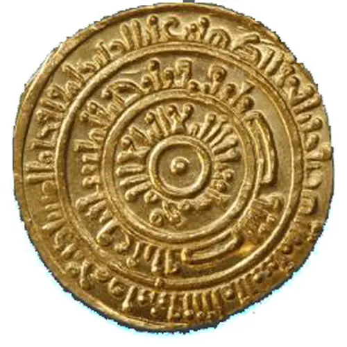 | Légende du revers | al-mustansir billah amir al-mu’minin da’a al-imam ma’add li-tawhid illa lahu al-samad bism allah duriba hadha’l-dinar bi-misr sana sab‘ wa sittin wa arba‘mi’a (Translation: Inner circle: “al-Mustansir billah, Commander of the Faithful” Middle circle: “the Imam Ma‘add summons all to confess the unity of God the eternal”. Outer circle: “in the name of God, this dinar was struck in Misr the year seven and sixty and four hundred”) |