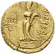 | Descrição do anverso | Nimbate usurper King holding standard surmounted by wheel (cakra) and dropping incense on altar with lettering around. |