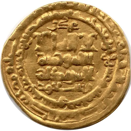 | Opis rewersu | Kufic inscription, enclosed in circle. One marginal legend. Sometimes with flower decoration at 6 o`clock and/or naming caliph. |