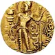 | Descrição do anverso | King standing left holding scepter sacrificing over altar, kings name in Brahmi in field. |