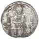 | Beschrijving keerzijde | Christ, nimbate, seated facing on decorated throne and holding book of Gospels with both hands, pellets on both sides of throne. |
