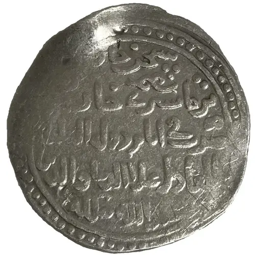 | Obverse description | Five line inscription with ruler names and titles (citing both Tarmashirin and Sanjar), in concentric solid and beaded circles. |