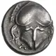 | Obverse description | Crested Corinthian helmet; below, A. |