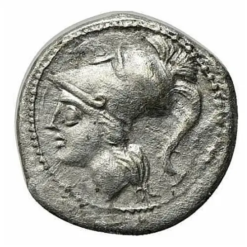 Helmeted head of Athena to left