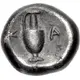 | Opis rewersu | One-handled lekythos; K-A flanking. |