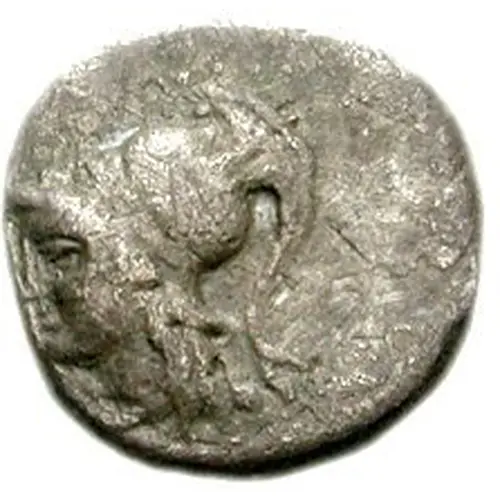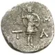 Reverse description Warrior advancing towards the right, holding a shield and a spear. A-M across upper field and T-A across lower field