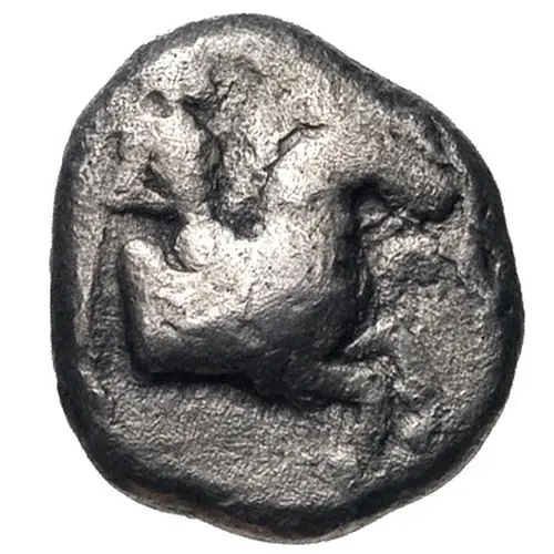 | Descripción del anverso | Rider on forepart of horse right. Π below head of horse |