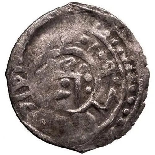 Описание аверса Tamga in small central circle, crude Arabic inscription around