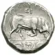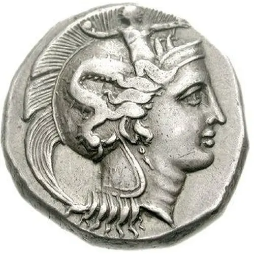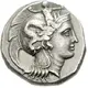 Obverse description Head of Athena right, wearing Attic helmet decorated with Scylla hurling rock.