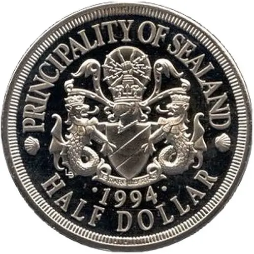 Opschrift voorzijde PRINCIPALITY OF SEALAND 1994 HALF DOLLAR