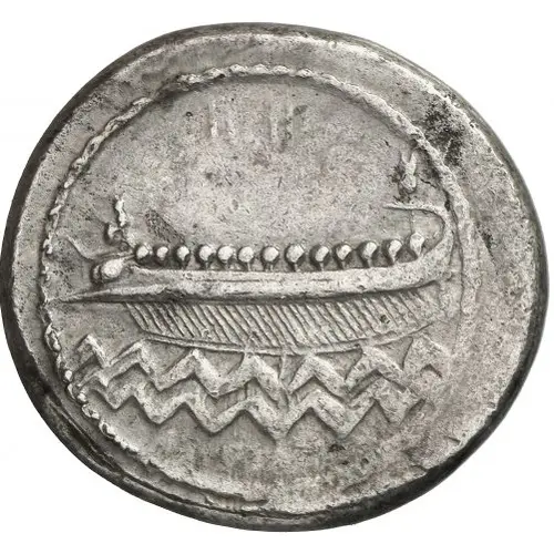 | 表面の説明 | War galley, lined with shields and with a standard at the stern, sailing to left over two bands of waves below, date above |