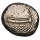 | توضیحات روی سکه | War galley left with row of shields on bulwark, Phoenician letter beth in field above, two zigzag lines of waves below |