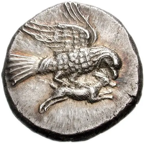 | Mô tả mặt trước | Eagle flying right, tearing at hare held in talons |