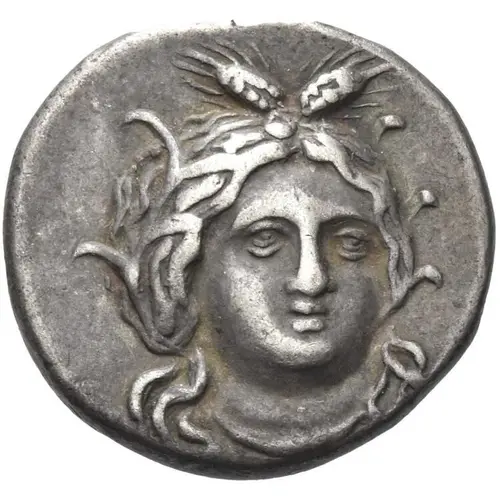 | Obverse description | Head of Demeter or Kore (Persephone) facing slightly right, wearing grain wreath. |