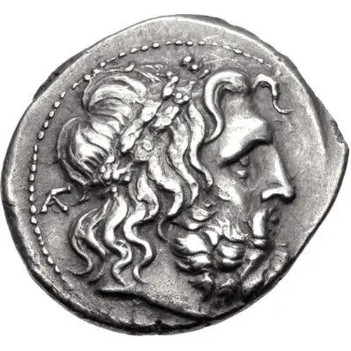 | Obverse description | Laureate head of Zeus right, behind, monogram, border of dots. |
