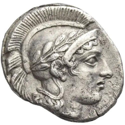 表面の説明 Head of Athena right, wearing Attic helmet decorated with wreath.