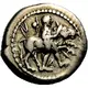 | Obverse description | Youthful Hero (Thessalos) walking right, nude but for cloak and petasos tied over his shoulders, holding, with both hands, a band around the head of a bull rushing to right |