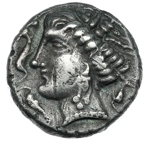 | توضیحات روی سکه | Female head (based on Persephone-Arethusa) facing left, surrounded by three dolphins |