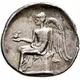 | توضیحات پشت سکه | Nike seated left on cippus, wearing kiton and himation, holding bird on her outstretched right hand and placing her left on cippus. |