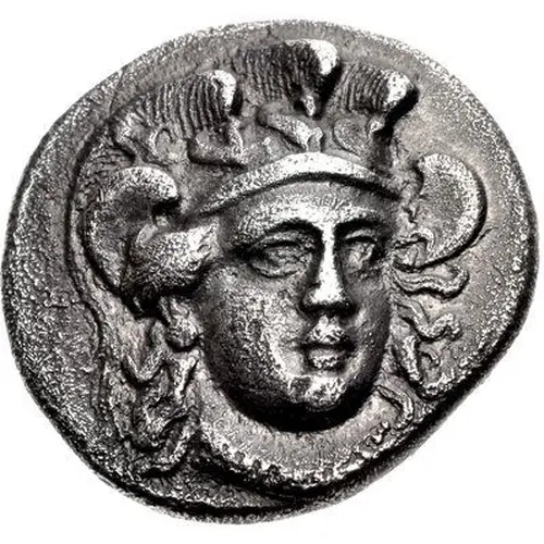 | توضیحات روی سکه | Head of Athena facing slightly right, wearing triple-crested Attic helmet, disc earrings, and necklace. |