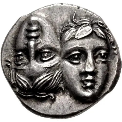 | توضیحات روی سکه | Facing male heads, the left inverted |