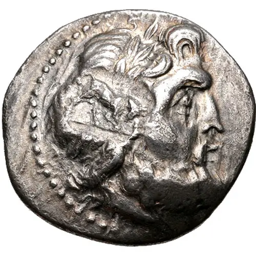 توضیحات روی سکه Laureate head of Zeus facing right.