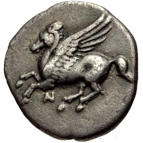 | Mô tả mặt trước | Pegasos flying towards the left. ΑΝ monogram below |