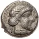 | Aversbeschreibung | Archaic-style laureate bearded male head (Zeus?) right. |