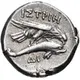Descrição do reverso Sea-eagle right, grasping dolphin with talons; ΔI under dolphin.
