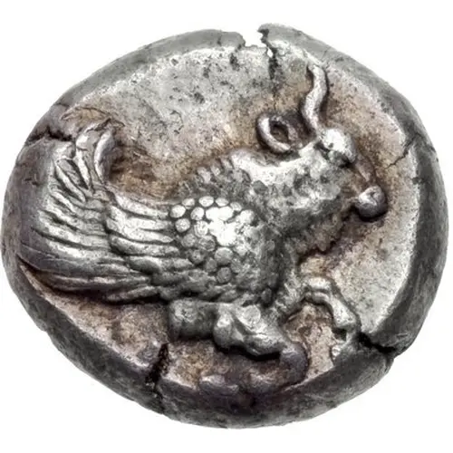 | Descripción del reverso | Quadripartite incuse square divided diagonally |
