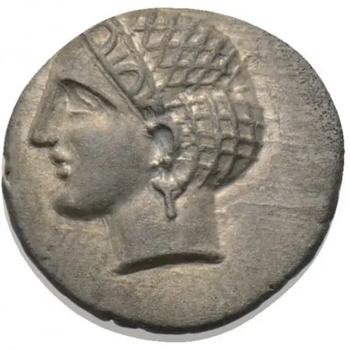 | توضیحات روی سکه | Female head left, with hair in sakkos. |