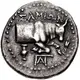 | توضیحات پشت سکه | Forepart of ox charging right; krater and ΠAΓ monogram below. |
