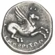 Obverse description Female head crowned with ears of wheat right, three dolphins around.
