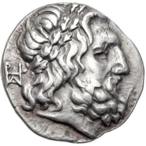 | توضیحات روی سکه | Laureate head of Zeus right, behind, monogram. |