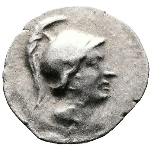 | توضیحات روی سکه | Male head right, wearing crested helmet. |