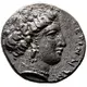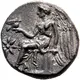 | Descrição do reverso | Nike seated left on plinth, holding caduceus or bird; in field, occasionally, star. |