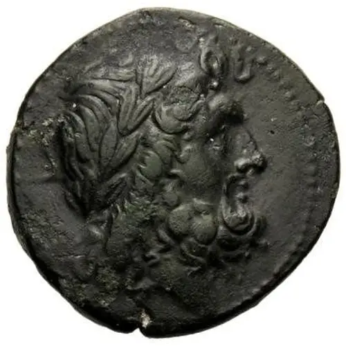 | Reverse description | Eagle standing left, wings open, sometimes on thunderbolt; at left, symbol (anchor, ram`s head, caduceus); around BPETTIΩN. |