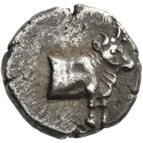 | Opis awersu | Forepart of bull right. |