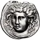 توضیحات پشت سکه Head of the nymph Kamarina facing slightly left, hair in ampyx and wearing earring and pearl necklace.