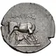 | Descripción del anverso | Cow standing left, head looked back, suckling calf. |