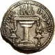 | Descrição do reverso | A fire-altar (atasdan) in the form of column with a capitellum and base consisting of some plates. Under the capitellum there is a tongue of flame. The capitellum is supported by stands in the form of `lion paws` resting upon censers. The stands are decorated with bows. There is a pointed rim around the picture. Pahlavi legend |