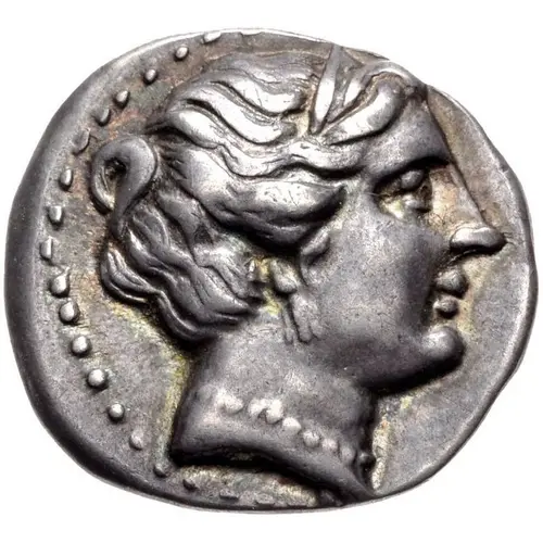 | Popis líce | Head of Aphrodite right, wearing sphendone and earring; dotted border. |