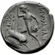 Mô tả mặt sau Artemis advancing left, striking stag lying left with spear and holding bow.