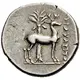 | Reverse description | Stag standing right and behind, palm tree |