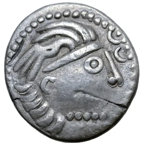 | Obverse description | Celticised, bearded head to right; two semicircles before. |