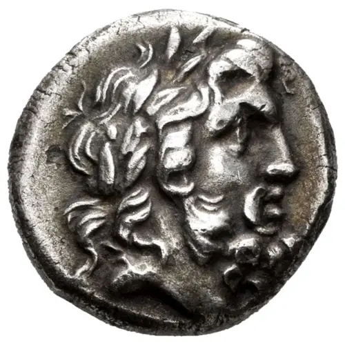 Описание реверса Winged thunderbolt, name of the magistrate above and lyre to the lower left.