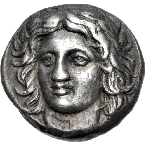 | Obverse description | Head of Apollo facing slightly left, wearing laurel wreath, drapery around neck. |
