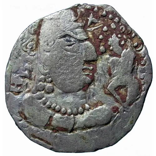 | Opis rewersu | Cross-legged goddess (Lakshmi?) in front |